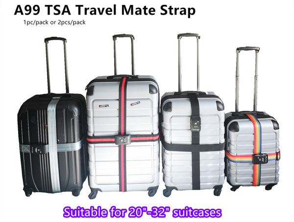 - It is easy to adjustable, the strap is 2 inches wide. And the adjustable length from 43.3in to 81in. It is a TSA luggage belt suitable for 20"-32" suitcases, and travel belt can be adjusted freely