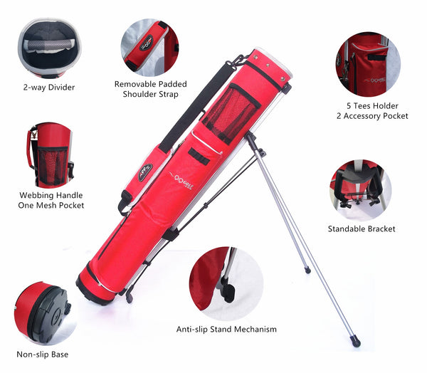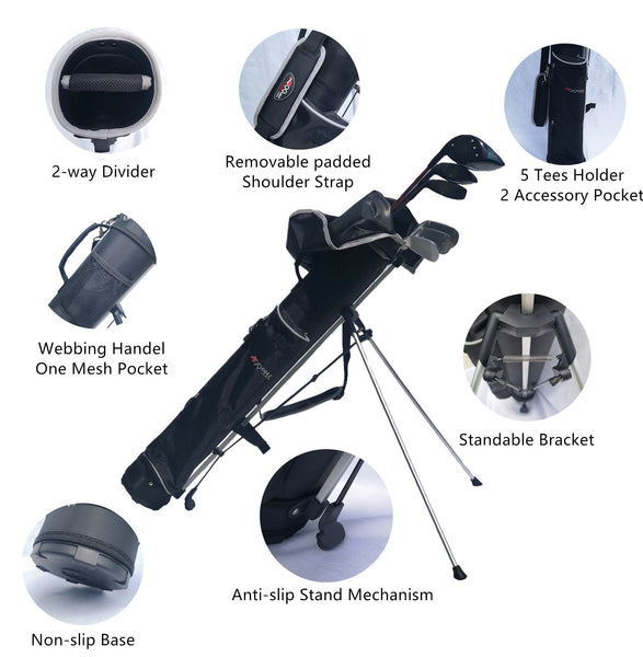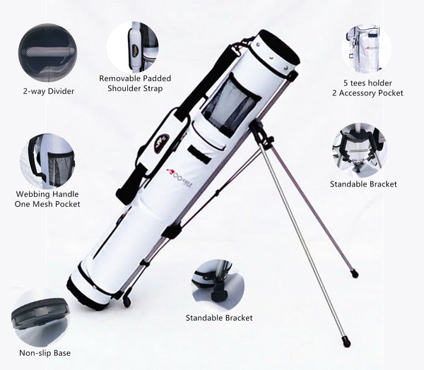 - Light weight, with stand, can hold half set clubs