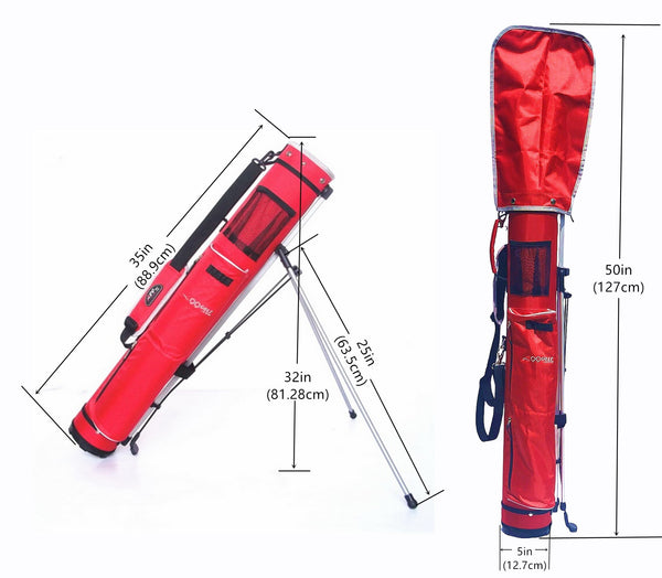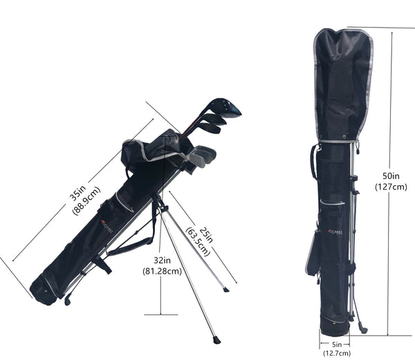 Size: 5” (12.7cm) top, 50"(127cm) high, 35" (88.9cm) shaft tube body. can hold 6-7pcs club.Item Package Dimensions: 35*8*5.5inches