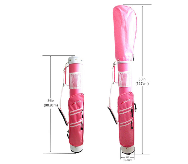 Size: 5” (12.7cm) top, 50"(127cm) high, 33" (83.82cm) solid cylinder tube body. can hold 4-6pcs club.Feature: